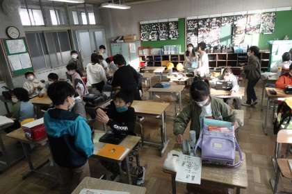 4年2組です。(1組は更衣中でした)宿題もていねいに頑張っていますね。