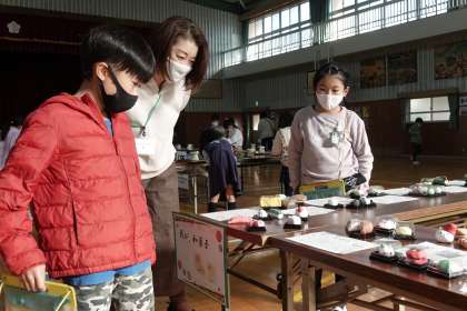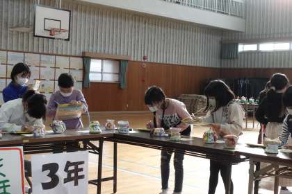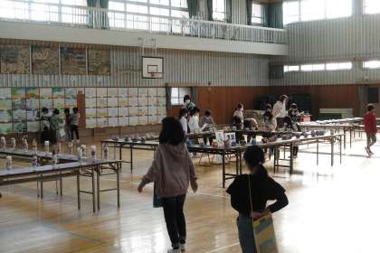 3年2組が作品展を見学していました。高学年の作品に「すごい上手」、「かわいい作品がいっぱい」など感動していました。