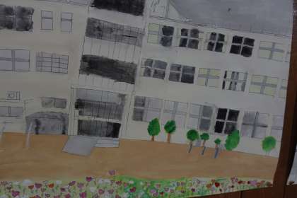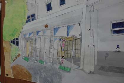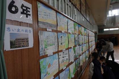 最後は6年生の紹介です。思い出になる住北小の校舎を描きました。