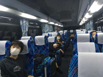 あと20分ほどで到着します。ドラえもんに夢中の6年2組です。