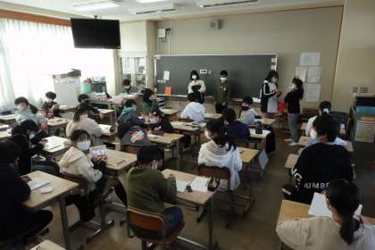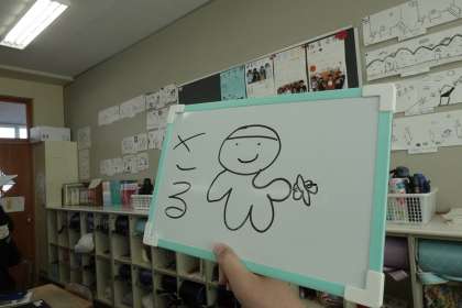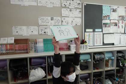 6年1組もお楽しみ会です。「お絵かき伝言ゲーム」です。