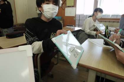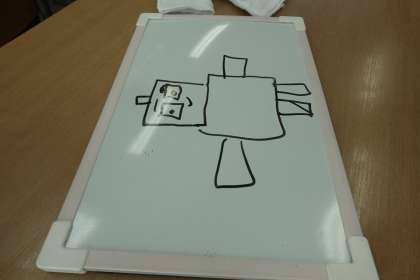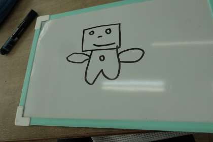 お絵かき伝言ゲームの続きです。答えは聞いていないのですが、おそらく「食パンマン」だと思われます。この後正しく伝わったのでしょうか・・?