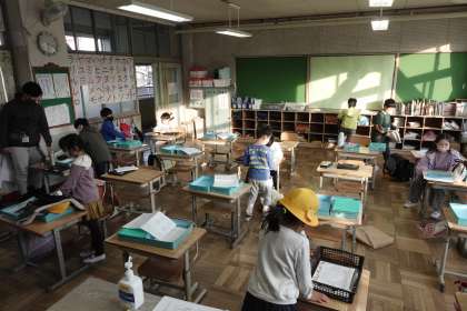 写真は朝の準備をする1年1組です。(2組は更衣中でした)