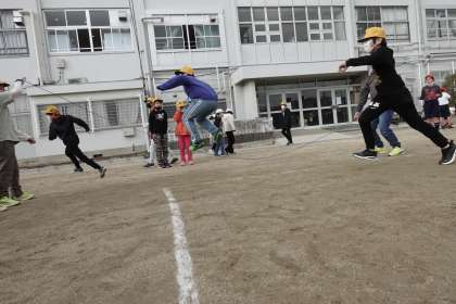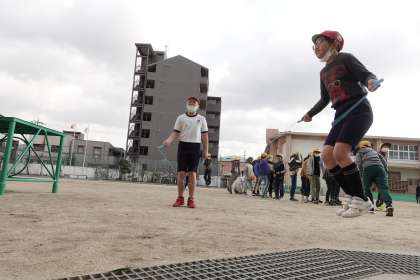 風がとても冷たく感じますが、子どもたちは元気です。半袖でも寒くないそうです。