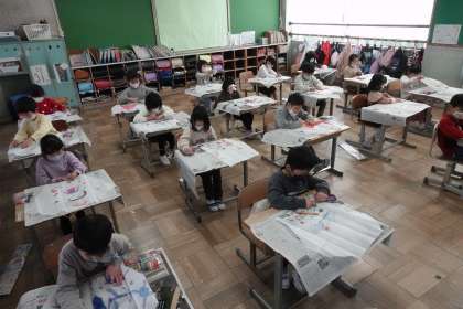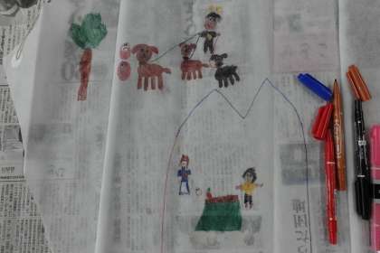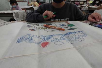 1年2組は、図工で「凧」を作っていました。明日凧あげの予定だそうです。