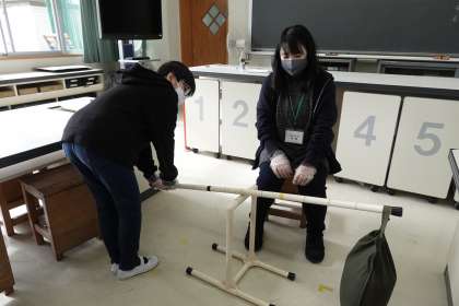 6年1組は理科の実験中です。「てこ」について学んでいます。
