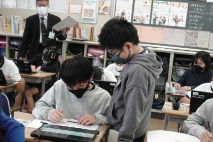 大東市教育委員会より、ICTアドバイザーと指導主事が来校され、5年2組の授業を参観されました。
