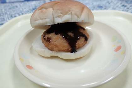 今日の献立は、バーガーパン、えびカツ、ホワイトシチュー、ソース、牛乳です。