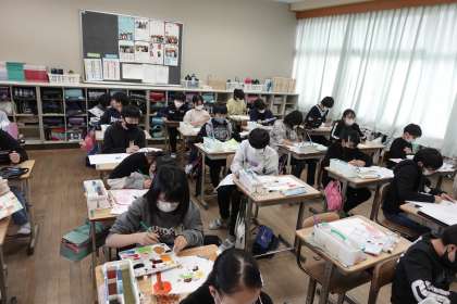 6年1組です。「さすが6年生!」と思わせる作品でいっぱいです。