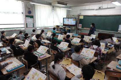 2年1組の様子です。音楽の授業です。