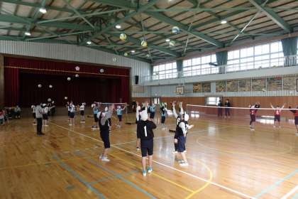 6年1組で体育の研究授業を実施しました。ソフトバレーボールを通じ、自分たちで色々考えながら取り組みました。無駄のない動きはさすが6年生です。