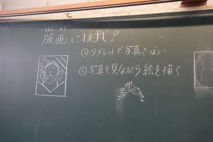 4年2組の図工です。タブレットを使って自画像にチャレンジです。思わず笑ってしまいました。