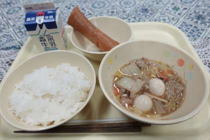 今日の献立は、八宝菜、春巻き、ご飯、牛乳です。春巻きはサクサクとしていてとてもおいしかったです。