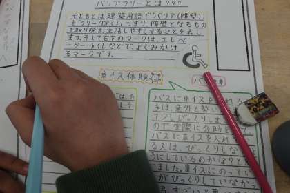5年1組です。「バリアフリー教室」で学んだことをまとめています。