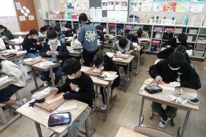 6年1組の様子です。図工の授業です。