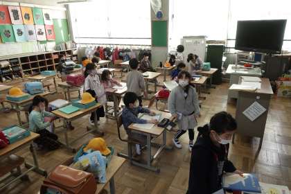 1年1組、2組です。昨日家族とお出かけしたことや家での出来事をたくさん教えてくれます。