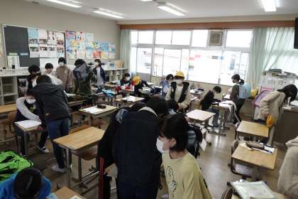 写真は朝の準備をする6年1組です。(2組は更衣中でした)いよいよ今週末に卒業式を迎えますね。