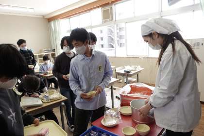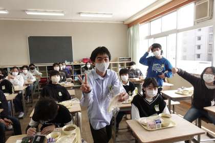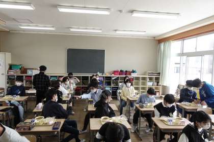 6年2組の給食タイムです。6年間の給食に感謝です。