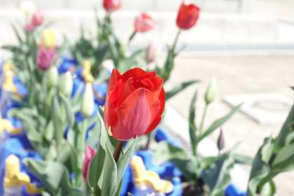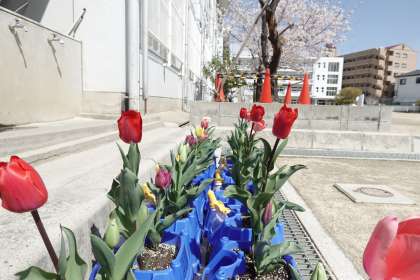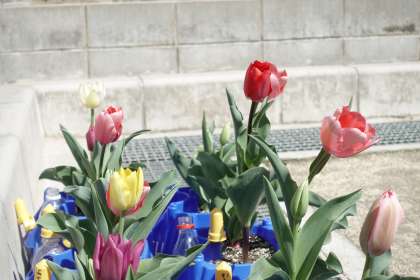 みなさんが、毎日お水をあげてていねいに育ててくれたチューリップです。こんなにきれいな花を咲かせていますよ。