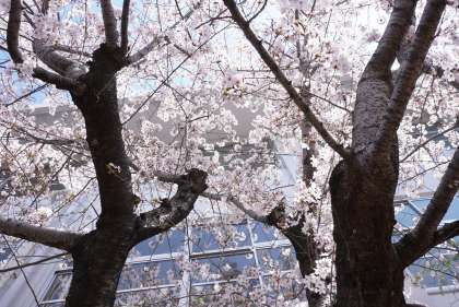 4月4日(月)です。正門付近の桜を撮影してみました。入学式までもってくれるといいのですが・・。