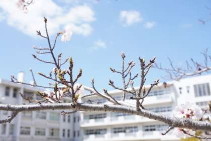 こちらは通用門(体育館)近くの桜です。こちらは入学式までもちそうな気がします。