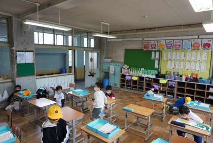 朝の準備をする1年2組です。