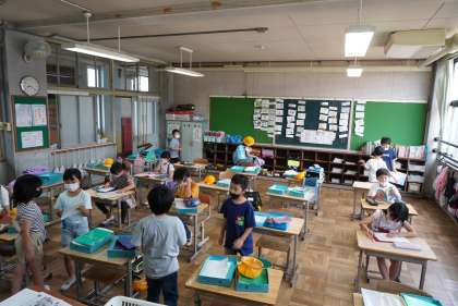 朝の準備をする2年1組です。(2組は更衣中でした)