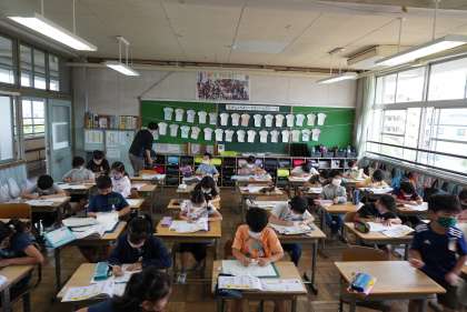 朝の準備をする3年生です。準備がとても早くなったと、担任の先生がおっしゃってました。