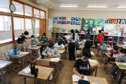 写真は朝の準備をする6年生です。
