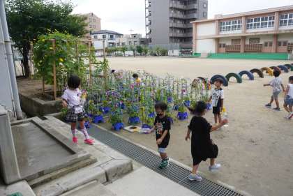 1年生の水やり風景です。このあと1年生はプールに入ります。