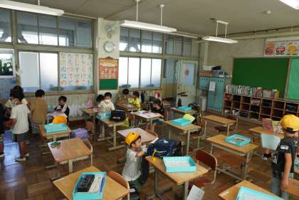 今日も一日頑張りましょう!写真は朝の1年1組、2組です。