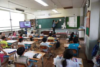 1年1組の様子です。カタカナの「マ」を学習しています。