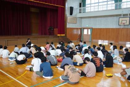 修学旅行まで一週間です。体育館で行程等の再確認を行いました。