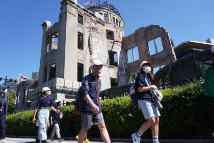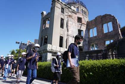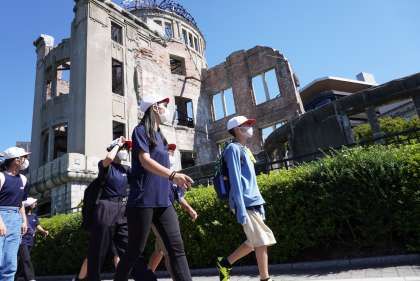 折り鶴セレモニーを行う「原爆の子の像」を目指します。