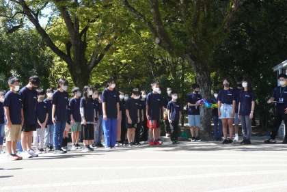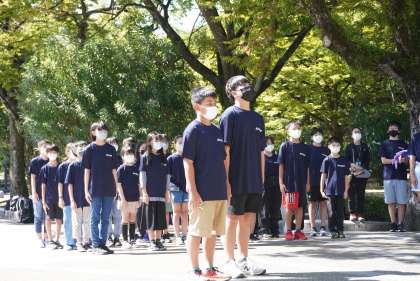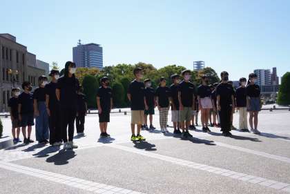 「原爆の子の像」で折り鶴セレモニーを行い、原爆で命を落とされた方へ黙とうを捧げました。