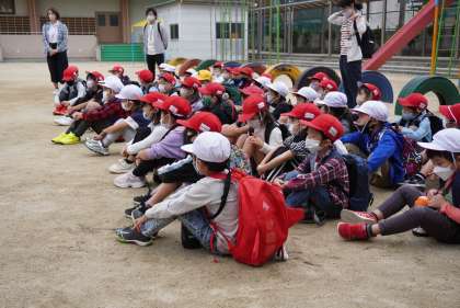 残念ながら校長先生は午後から出張があり、今日の遠足は教頭先生に行っていただきました。教頭先生には写真をたくさん撮ってきてもらいますので、明日以降ホームページに掲載したいと思います。写真は出発前の1年生です。