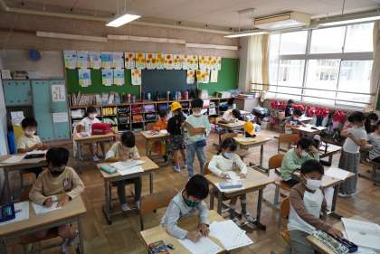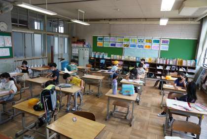 朝の準備をする2年1組、2組です。昨日たくさん遊んだ分、今日は一生懸命勉強しましょうね。
