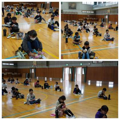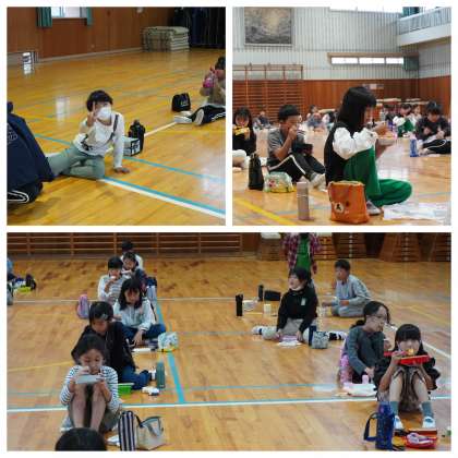 遠足に行けなかった4年生は、体育館でお弁当を食べました。楽しかったです。