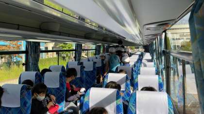 10月11日です。おはようございます。今日は3年生の遠足です。天気に恵まれました。これからサイクルスポーツセンターへ向かいます。