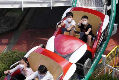 サイクルコースターを楽しむ子どもたちです。