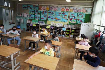 1年2組です。いい姿勢で待てる人がふえてきましたね。