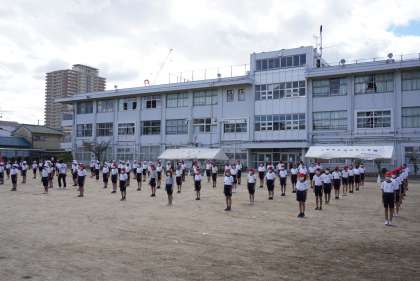 運動会の練習に取り組む5年生、6年生を撮影しました。集中して頑張れています。