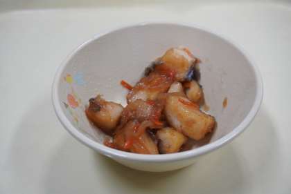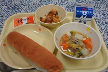 今日の献立は、ホキの南蛮漬け、豆腐の中華煮、コッペパン、ミルクバター、牛乳です。