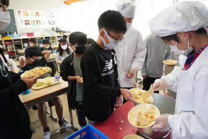 焼き飯を戻しているので不思議に思い理由を聞くと、配分を間違えて何人か分が足らなくなってしまい、みんなで「協力」しあっていたそうです。