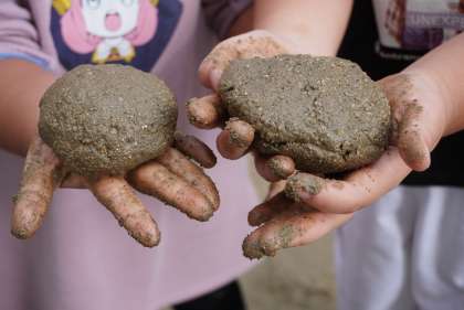 3年生が泥団子を作って遊んでいます。ハンバーグだそうです。(この後しっかり手洗いしました)