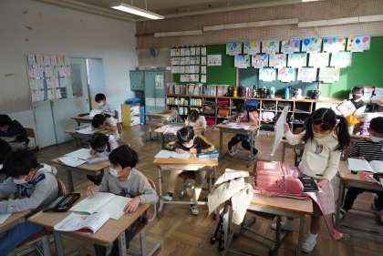 朝の準備をする2年生です。
