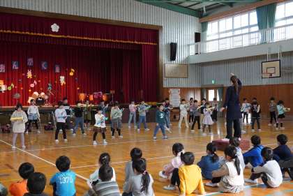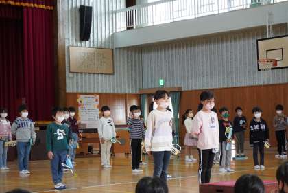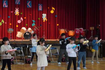 2年生は、合奏「エル・クンバンチェロ」、斉唱・リズム奏「世界中のこどもたちが」を披露してくれました。