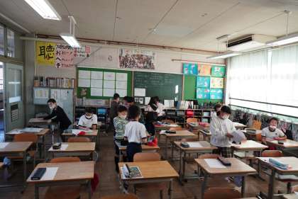 朝の準備をする3年1組です。