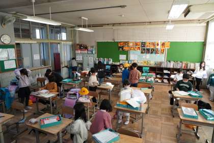 朝の準備をする2年1組です。(2組は更衣中でした)