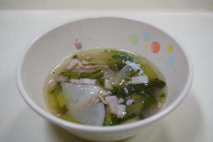 今日の献立は、和風スパゲティ、かぶのスープ、ベビーパン、ヨーグルト、牛乳です。
